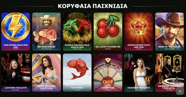 Για επιτραπέζιο παιχνίδι, καλύπτουμε Blackjack, Roulette και Baccarat με διάφορα σετ κανόνων. Το live καζίνο προσθέτει πραγματικούς dealers, πολλαπλές γωνίες κάμερας και γρήγορα side bets σε επιλεγμένα τραπέζια. Οι επιλογές instant-win περιλαμβάνουν crash games και τίτλους τύπου arcade, που είναι φτιαγμένοι για σύντομες συνεδρίες. Πολλά παιχνίδια προσφέρουν επίσης λειτουργία demo, ώστε να ανοίξεις έναν τίτλο, να επιλέξεις την επιλογή δωρεάν παιχνιδιού όταν εμφανίζεται και να μάθεις τα features πριν κάνεις κατάθεση.